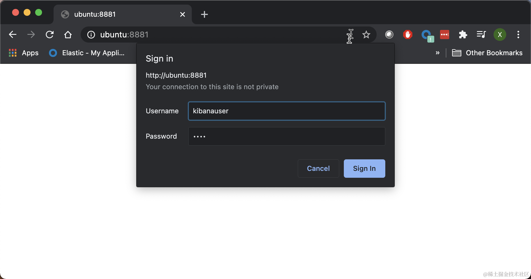 如果我们使用其它机器访问 Elasticsearch,我们同样也需要使用正确的用户名及密码: