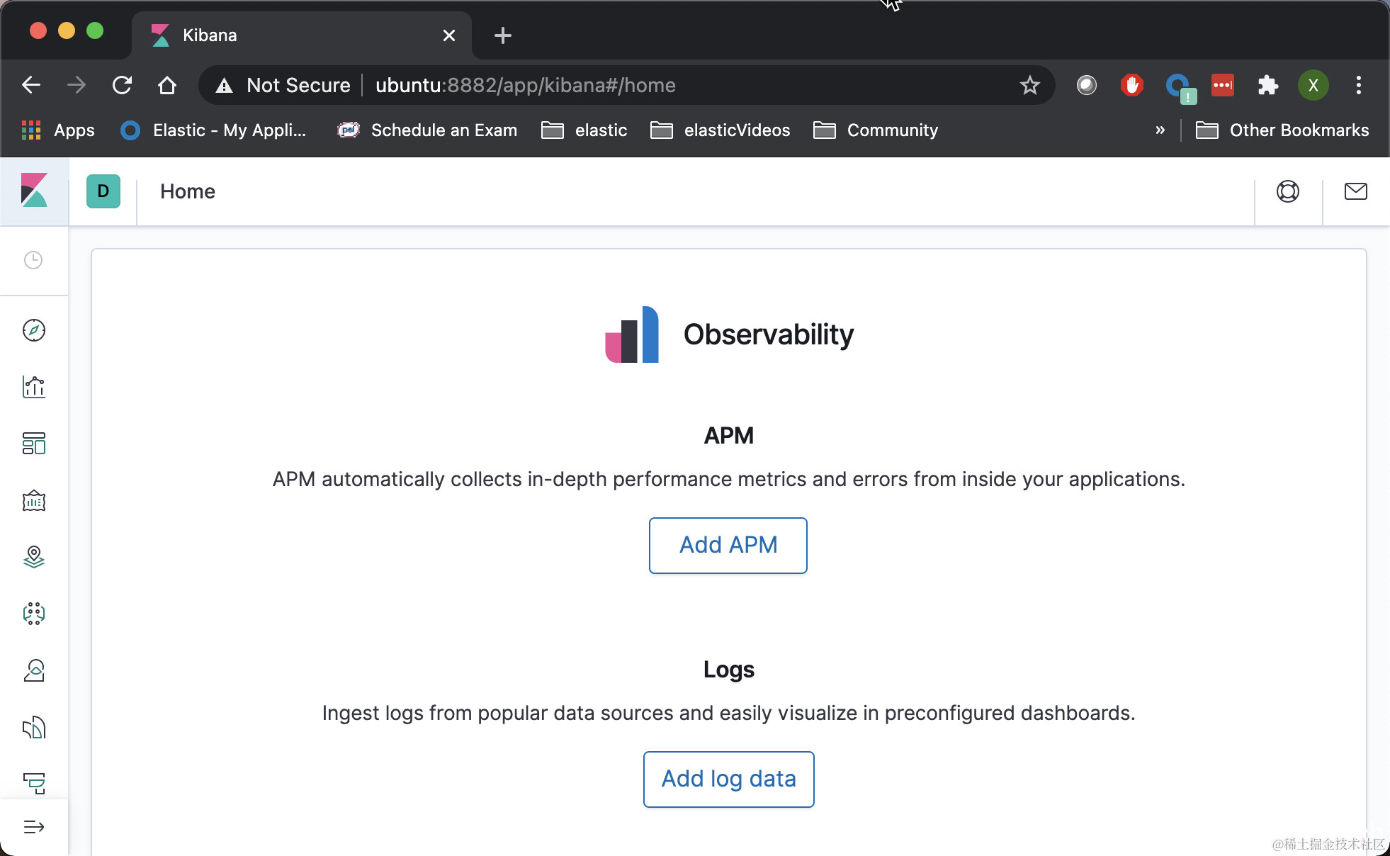 针对我们的实验,我们需要安装 Elasticsearch 已经 Kibana。请参阅我之前的文章 “Elastic:菜鸟上手指南” 进行安装。我都使用默认的配置。等 Elasticsearch 以及 Kibana 都起来之后,我们可以看到如下的画面: