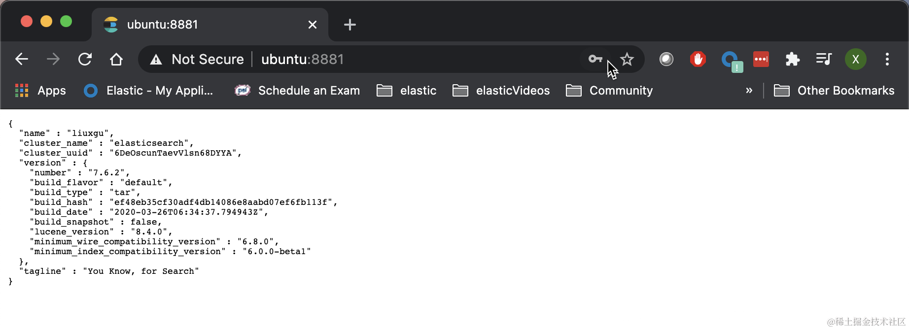 从上面的输出中我们可以看出来他需要验证才可以进行访问。我们接下来使用如下的方式来访问 Elasticsearch: