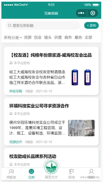 华中师范大学校友小程序 - 校友互助模块