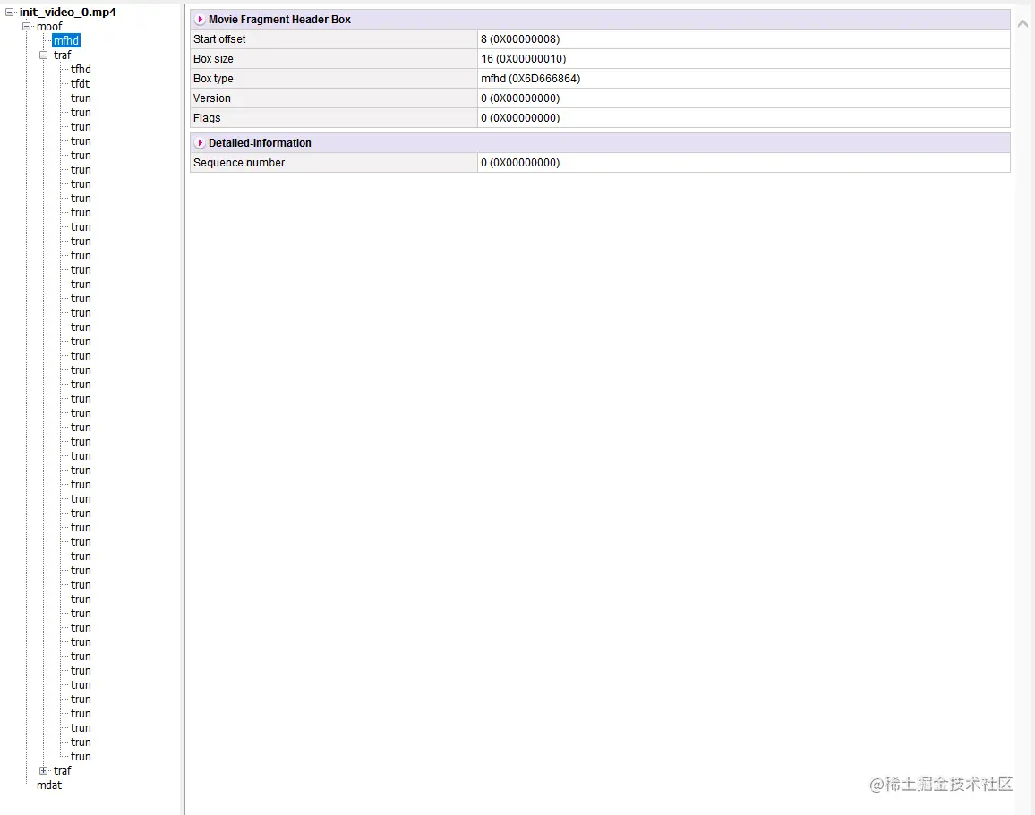可以看出来, #EXT-X-MAP中的视频片段中没有实质内容, 只有视频的头部, 了解MP4视频构造的都知道moov是MP4的头部, mdat才是MP4的实质内容,