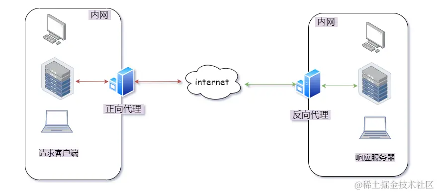 所谓“代理”,是指在内网边缘 设置一个硬件/软件转发请求; “正向”还是“反向”的说法,取决于转发的是"出站请求"还是"入站请求".