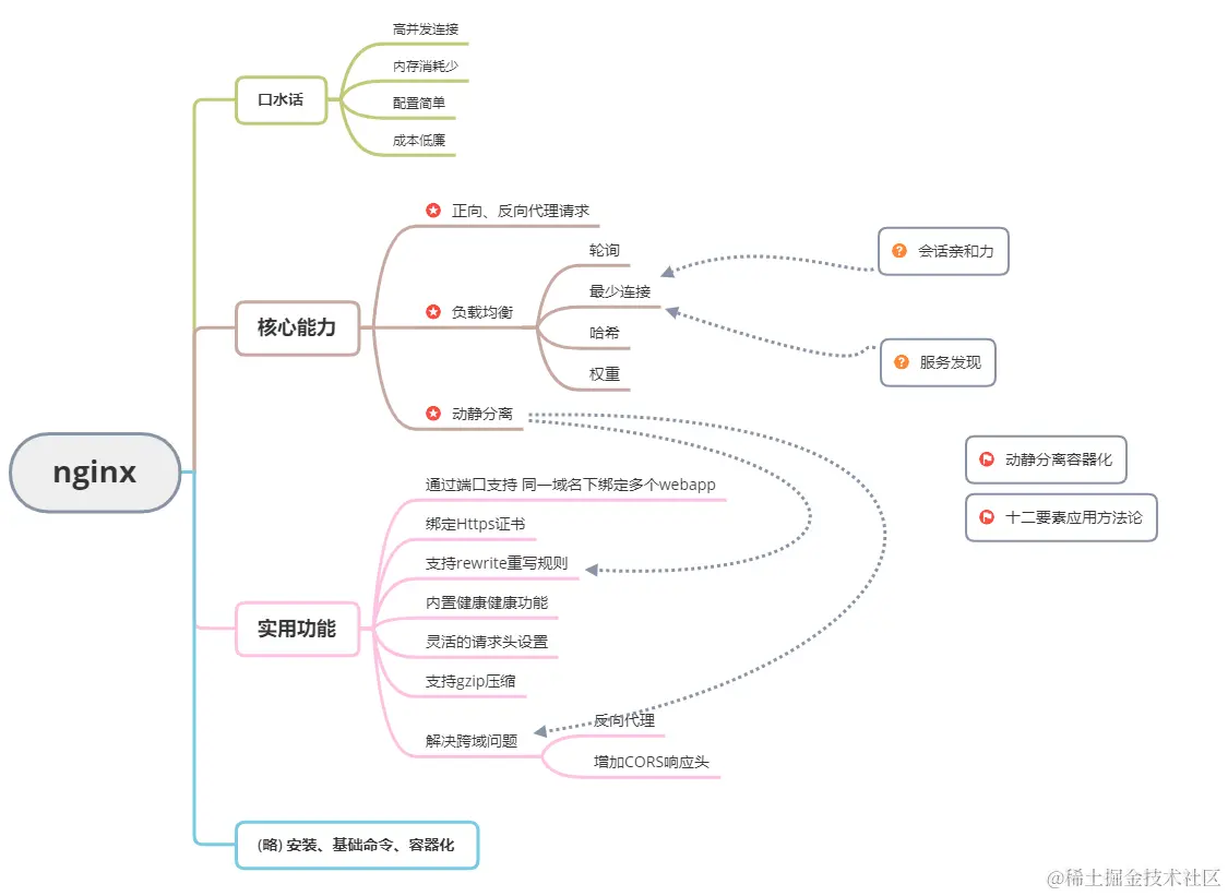 下班想了一下,平时潜移默化用到不少nginx的能力,但在面试的时候没有吹成对应的概念。