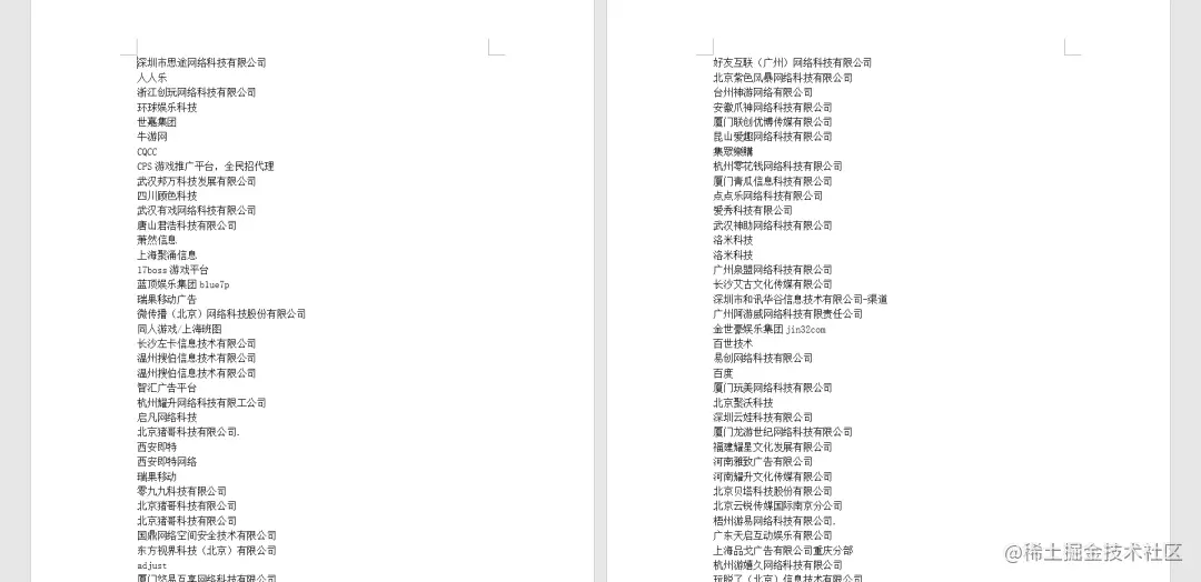 获取对应的公司名称,保存文档。