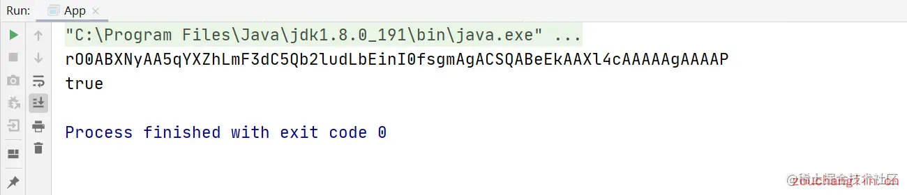 我们利用上面的方法将一个对象进行序列化,并得到的ByteString对象按照base64格式进行输出: