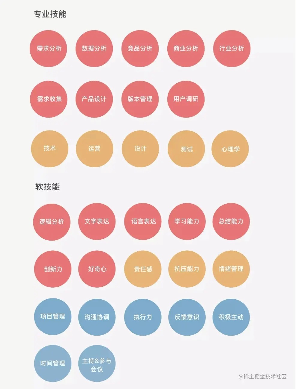除了这些,我重点说下和那位产品大佬重点交流的几个方面,有些在上面的技能图中,有些不在。小伙伴们,可自行对比,希望每位做产品的小伙伴,都满足这些基本的职业素质。