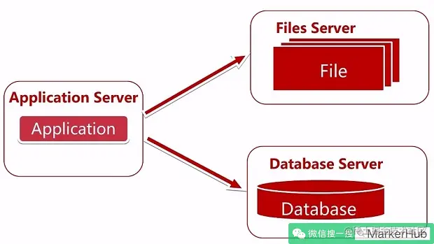 从一个小网站说起,一般来说初始一台服务器就够了,文件服务器、数据库以及应用都部署在一台机器上。也就是俗称的 all in one 架构。