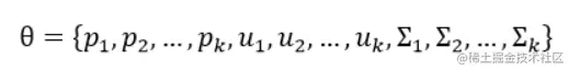 结合表格数据,是概率值,而当时概率符合高斯分布,所以高斯混合模型的概率密度函数表示为: