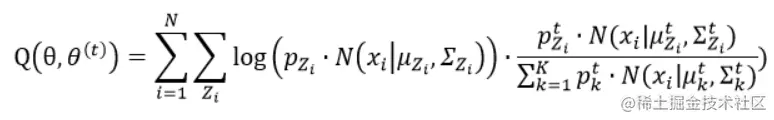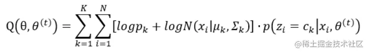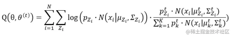 将高斯混合模型条件概率密度函数和联合概率密度函数代入上式得: