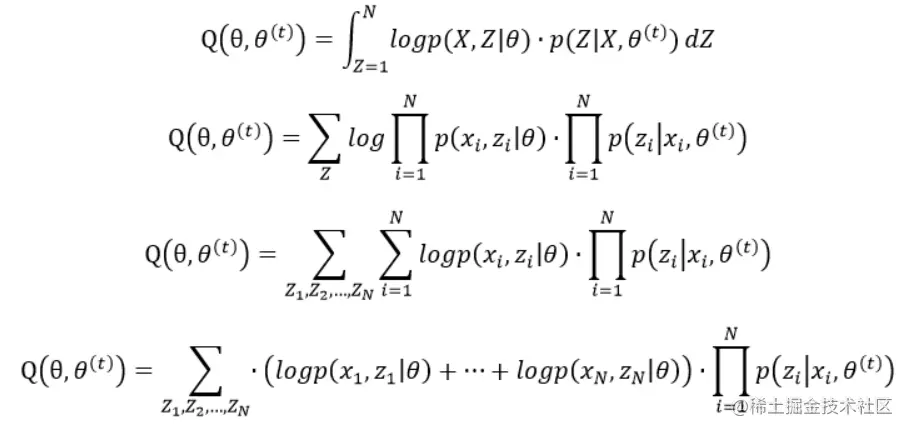 接下来讲解使用EM算法求解高斯混合模型,先给出EM算法的求解时迭代公式: