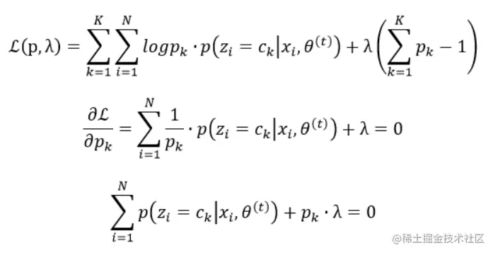 上面就是经过E-Step得疯狂推导得出的结论,接下来M-Step就是通过最大化期望来求解参数值: