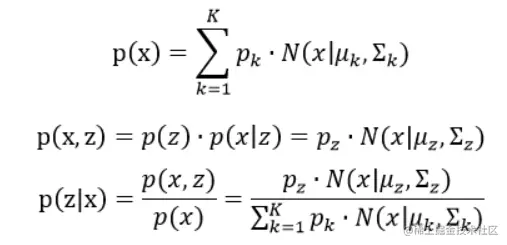 根据上述表格先给出高斯混合模型的概率密度函数,公式如下: