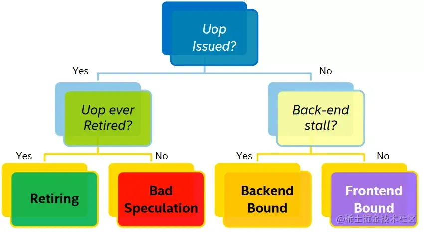 只有Retiring 类别是越高越好,其他三类都是占比越低越好。如果某一个类别占比比较突出,那么它就是我们进行优化时重点关注的对象。