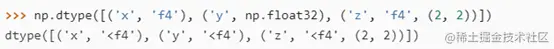 可以使用numpy.dtype函数创建结构化数据类型,规范有4种形式,它们在灵活性和简洁性上各不相同。