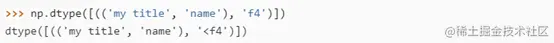 要在使用dtype规范的元组列表形式时添加标题,可以将字段名指定为两个字符串的元组,而不是单个字符串,分别是字段的标题和字段名。例如: