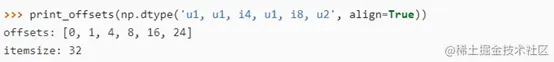 NumPy使用两种方法之一来自动确定字段字节偏移量和结构化数据类型的整体项目大小,具体取决于是否将align=True指定为numpy.dtype的关键字参数。