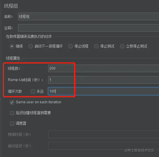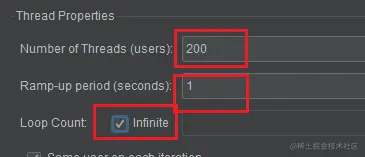 配置每秒发送 200 个请求,一直循环执行,直到手动停止压测。如下图所示: