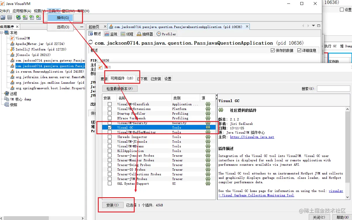 安装步骤:工具->插件->可用插件->Visual GC->安装。安装完成后,重启就可以使用插件功能了。