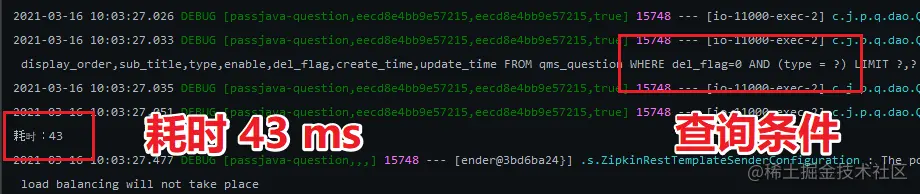 然后重启 passjava-question 服务,再次测试这个 api,耗时 43 ms