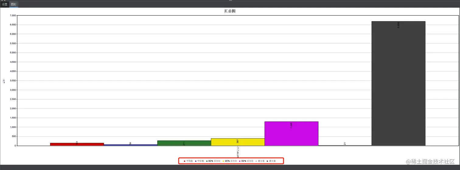 中位数是 59 ms,说明大部分请求的响应时间是 59 ms。
