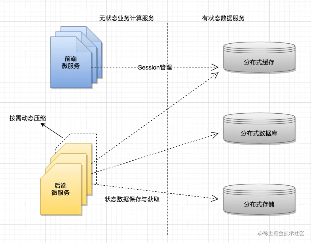 对于无状态服务,首先说一下什么是状态:如果一个数据需要被多个服务共享,才能完成一笔交易,那么这个数据被称为状态。进而依赖这个“
