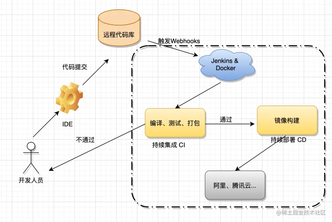 在项目多的时候,重复操作极大的浪费时间。如果遇到同一时间不同项目组打包项目,打包和部署服务器就要排队使用,测试人员只能在等待中浪费时间。为了解决这些问题,选择寻找合适的持续集成方案。来自动化完成重复的步骤。jenkins 还包含了很多插件,比如代码校验等等。是 CI/CD 的基本技术。核心功能: