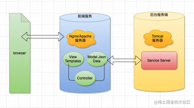 前后端分离原则,简单来讲就是前端和后端的代码分离,我们推荐的模式是最好采用物理分离的方式部署,进一步促使更彻底的分离。如果继续直接使用服务端模板技术,如:jsp,把 java、js、html、css 都堆到一个页面里,稍微复杂一点的页面就无法维护了。