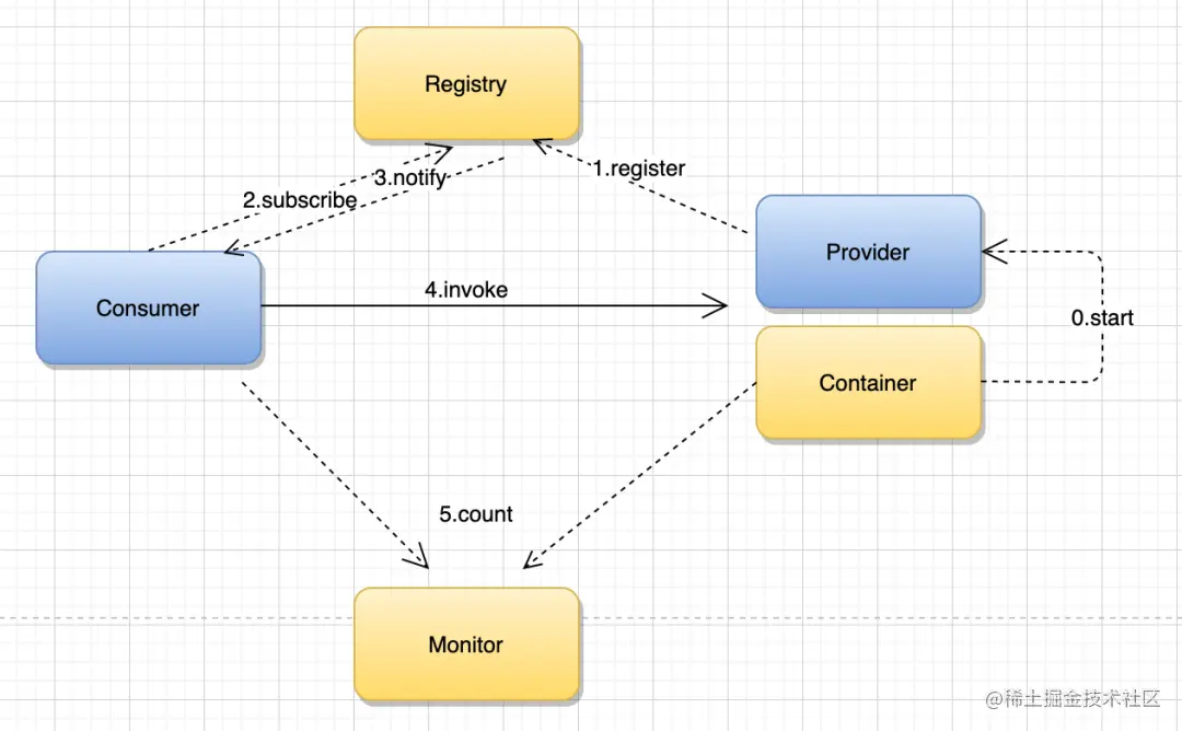 Monitor:统计服务和调用次数,调用时间监控中心。(Dubbo 的控制台页面中可以显示,目前只有一个简单版本。)