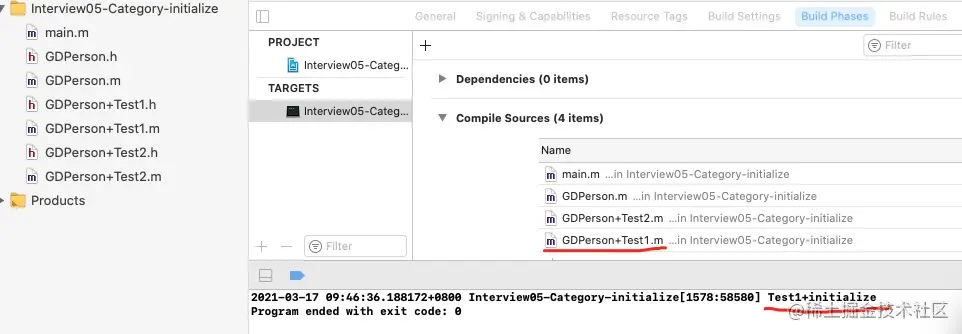 还是一样,我创建GDPerson类和Test1、Test2分类,里面分别调用了initialize方法,如下:
