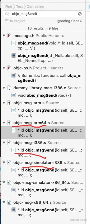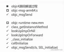 这里发现点进去全是汇编语言,汇报语言就不浪费大家时间,我们通过另一个思路去想,class_getInstanceMethod方法去查看,我看了最新版的源码是objc4-818版本,它里面不像之前的版本可以看出一些实现,而objc4-818版本我看多数实现是汇编语言,所以无法具体分析,这里大家可以下载一个之前的版本分析,都是非常清楚的,我把源码分析步骤发一下,有兴趣的可以尝试一下