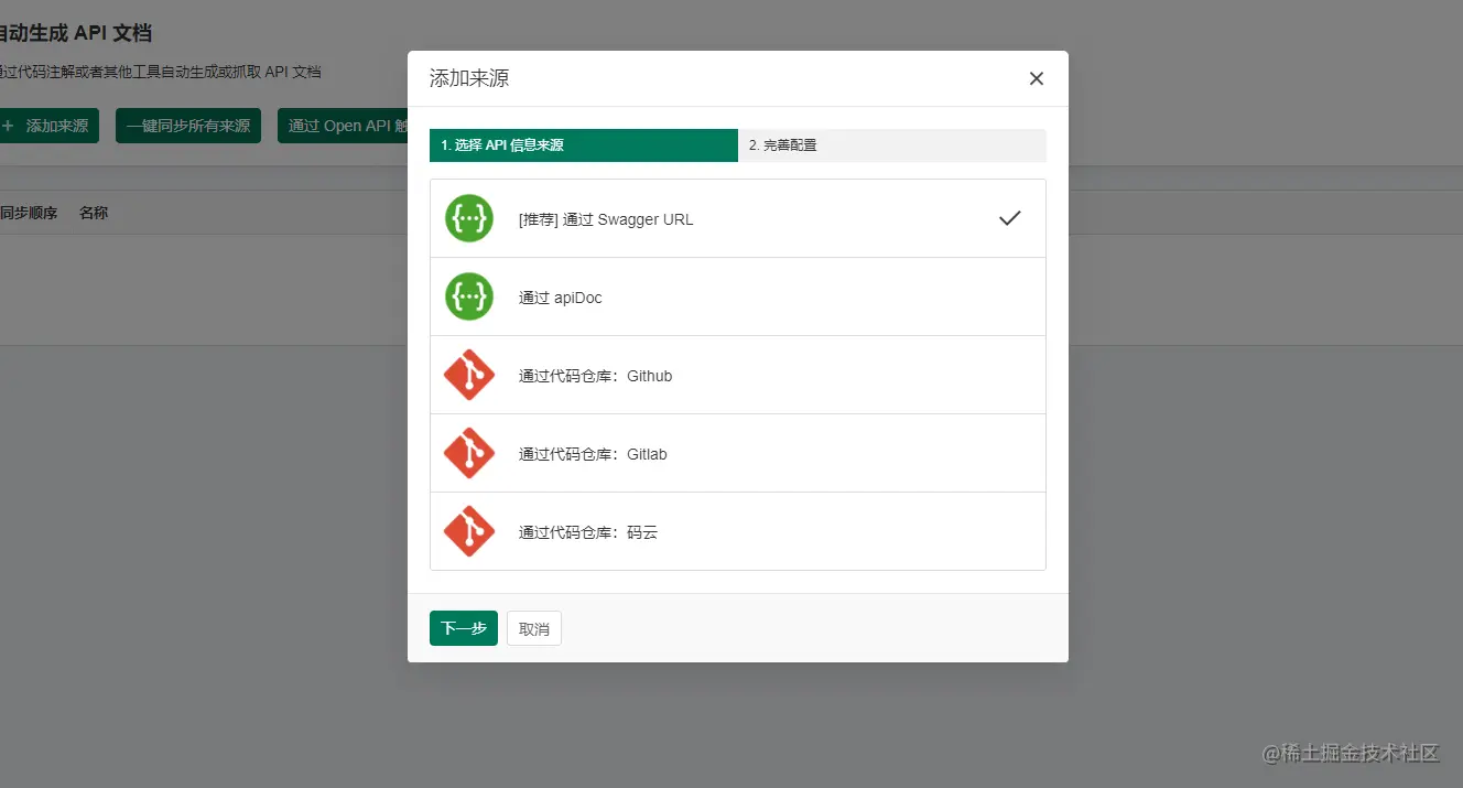 3、在弹窗中选择通过Swagger URL生成API文档,然后点击下一步: