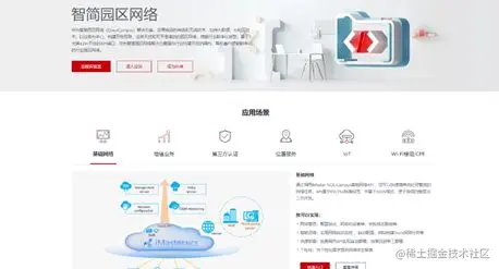 智简园区网络社区分四个部分,包括网页title,应用场景,开放资源和知识中心。