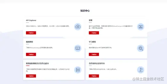 这部分包括三个快速入口,分别是在线开发,文档中心和进入论坛。通过“在线开发”入口可以直接进入免费试用线上资源进行在线开发;通过“文档中心”可以进入开发过程中需要的文档,软件和插件包等;通过“进入论坛”可以与大咖进行技术交流和求助,并学习相关前沿技术。