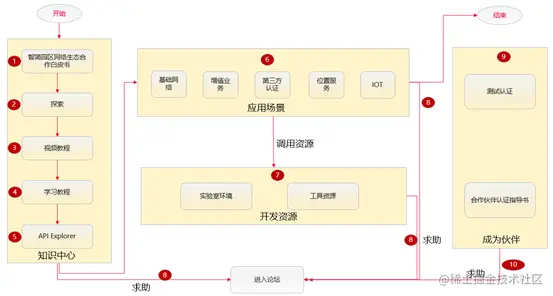 如上图所示,开发者可以通过10个步骤完成对智简园区网络社区的学习和体验。第1-5步是前期学习,其中可以通过智简园区网络生态合作白皮书学习智简园区产品和解决方案原理和开放能力。第6-7步是上手操作体验,可以选择自己关心的场景进行体验。第8步是遇到任何问题可以进入论坛进行求助,第9-10是成为华为智简园区合作伙伴操作指导及测试认证指导。好了,资源和体验步骤都给大家提供,现在就开始你的智简园区网络学习体验之旅吧!