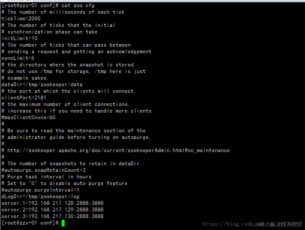 server1 = IP1:2888:3888(2888:访问 zookeeper 的端口;3888:重新选举 leader 的端口)