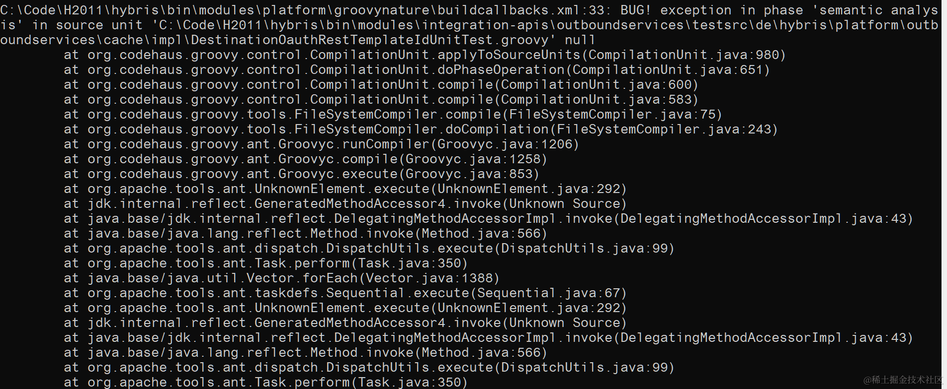 BUG! exception in phase ‘semantic analysis’ in source unit ‘C:\Code\H2011\hybris\bin\modules\integration-apis\outboundservices\testsrc\de\hybris\platform\outboundservices\cache\impl\DestinationOauthRestTemplateIdUnitTest.groovy’ null