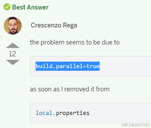 修改local.properties, 去掉build.parallel=true这行配置即可解决。