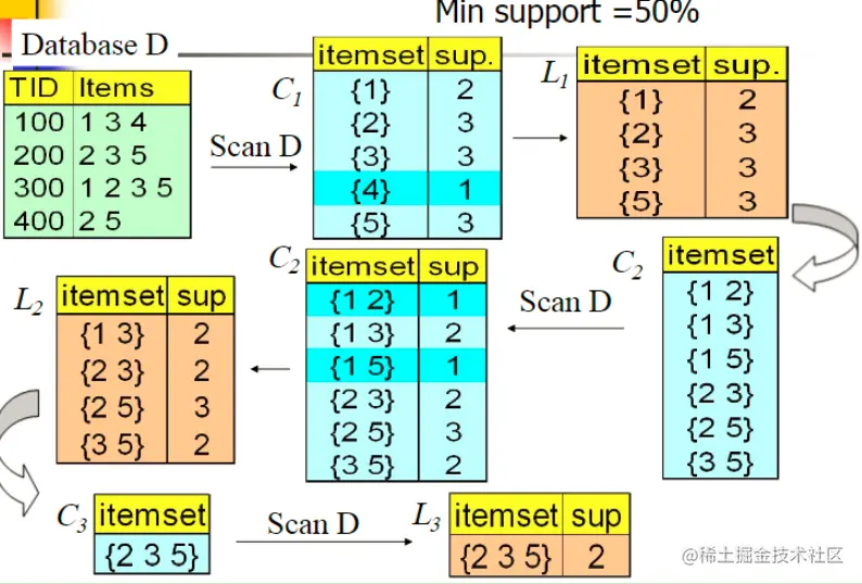 关联规则方法的步骤如下: