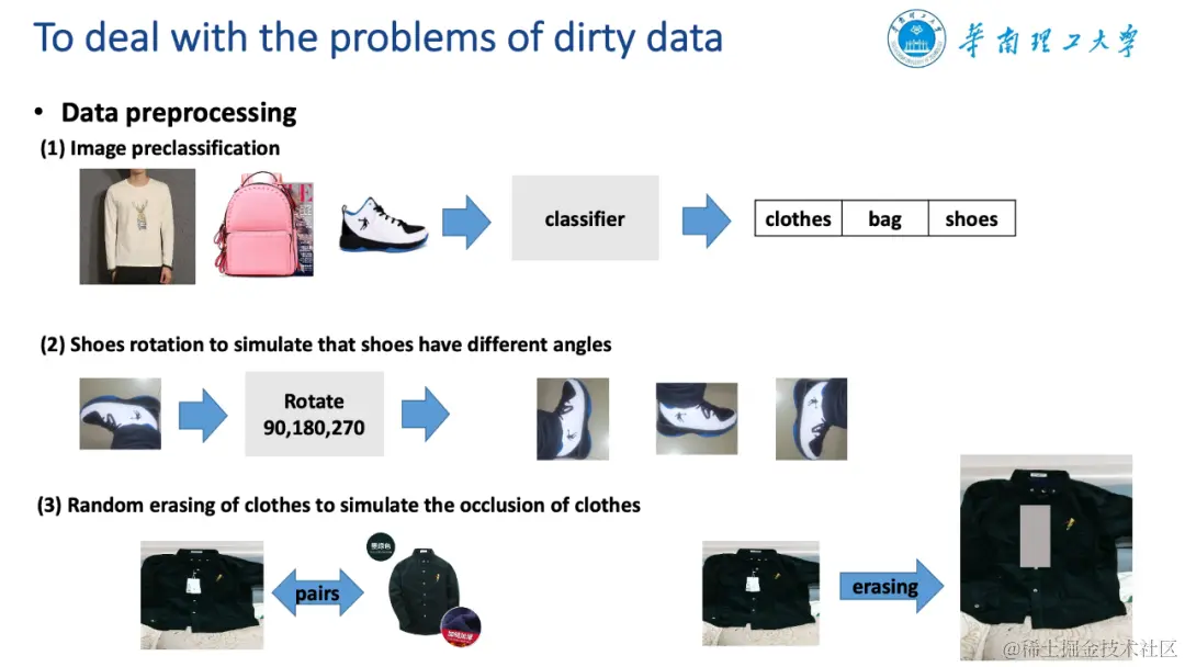 ‐ 训练数据:1.2 万个真实的京东时尚单品图片对 ,即{电商展示图+用户实拍图}