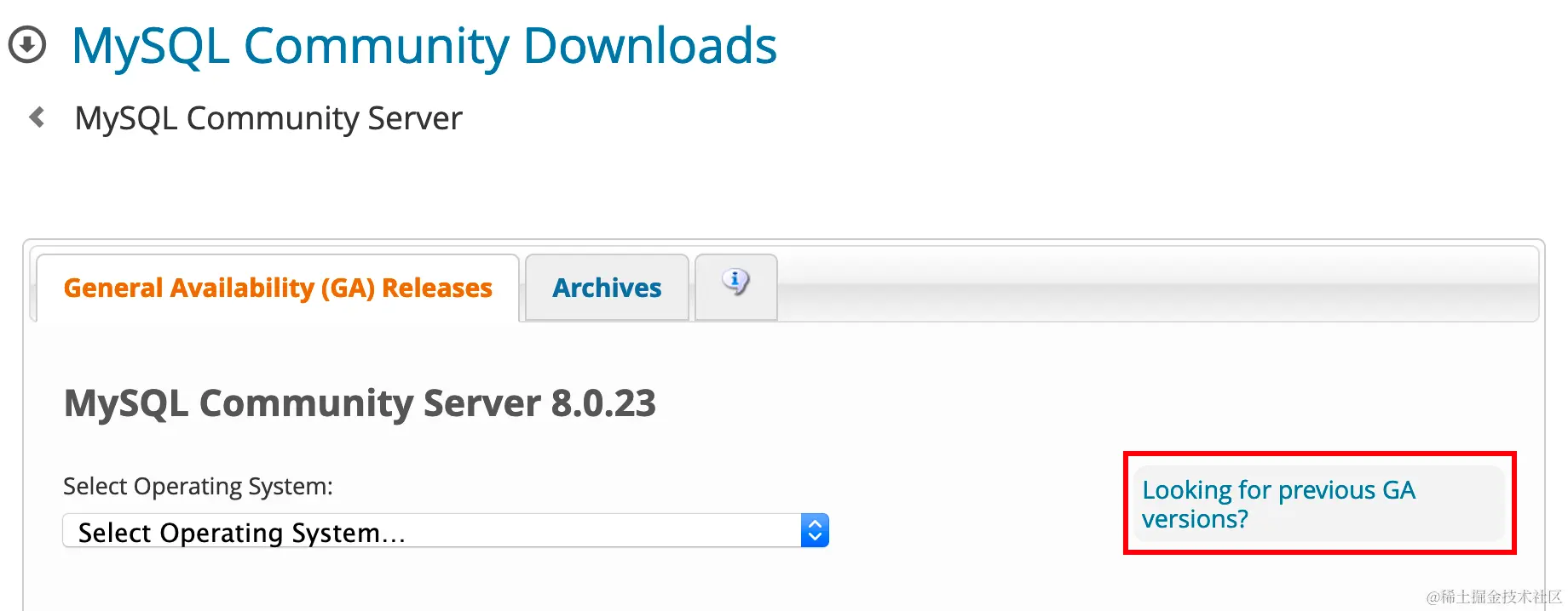 - 进入界面后点击Looking for previous GA versions链接: