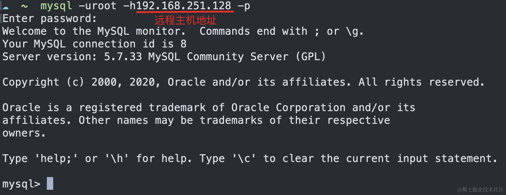 使用mysql命令进行远程登录测试: