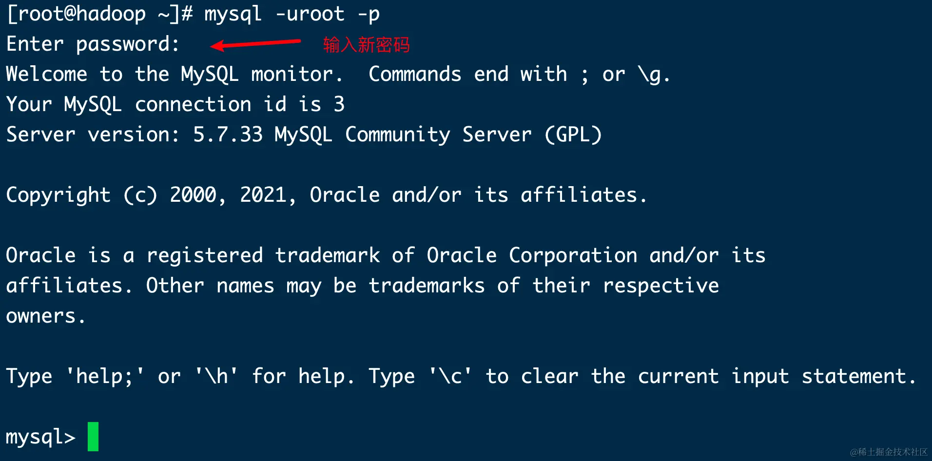修改密码后使用 exit; 退出,重新使用新密码登录测试。