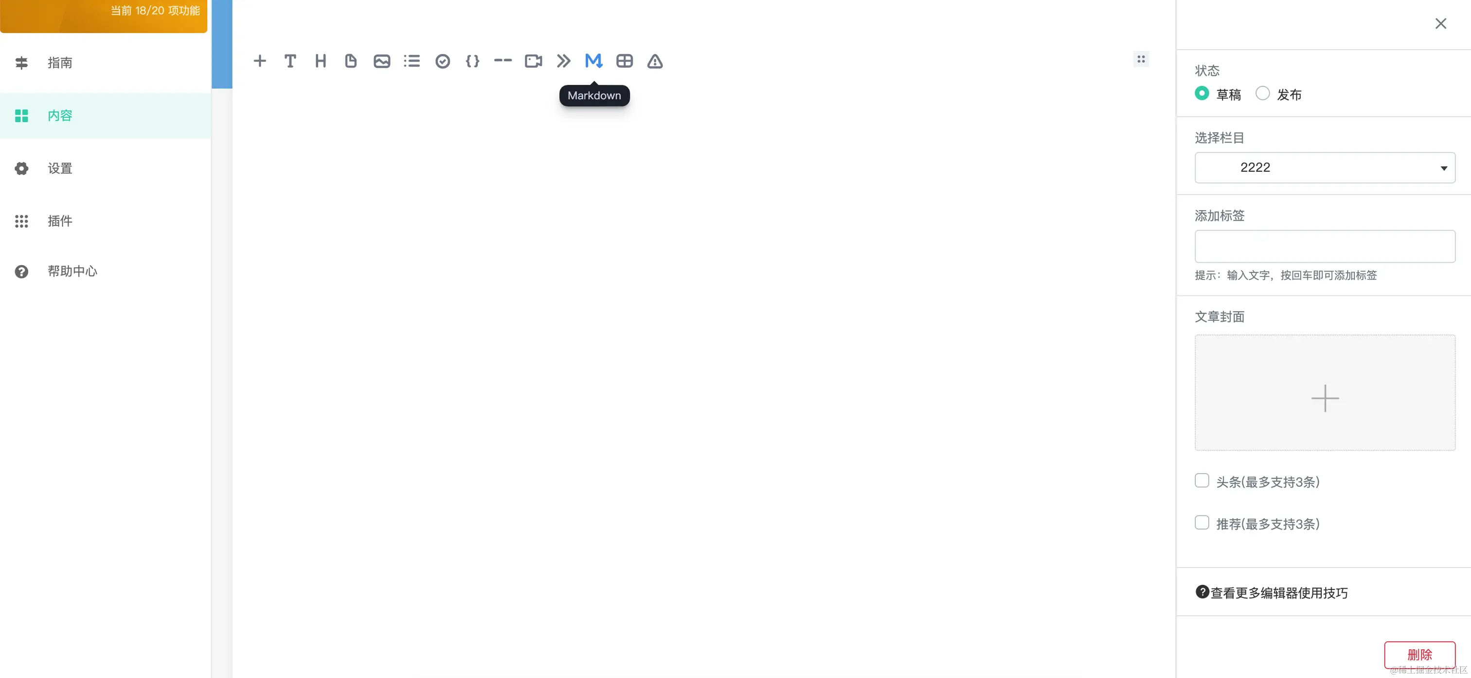 编辑界面类似word,支持Markdown编辑,在文章中可以插入图片、视频、文件、超链接、代码、表格等,轻松实现图文结合展示,给用户更好的视觉体验。