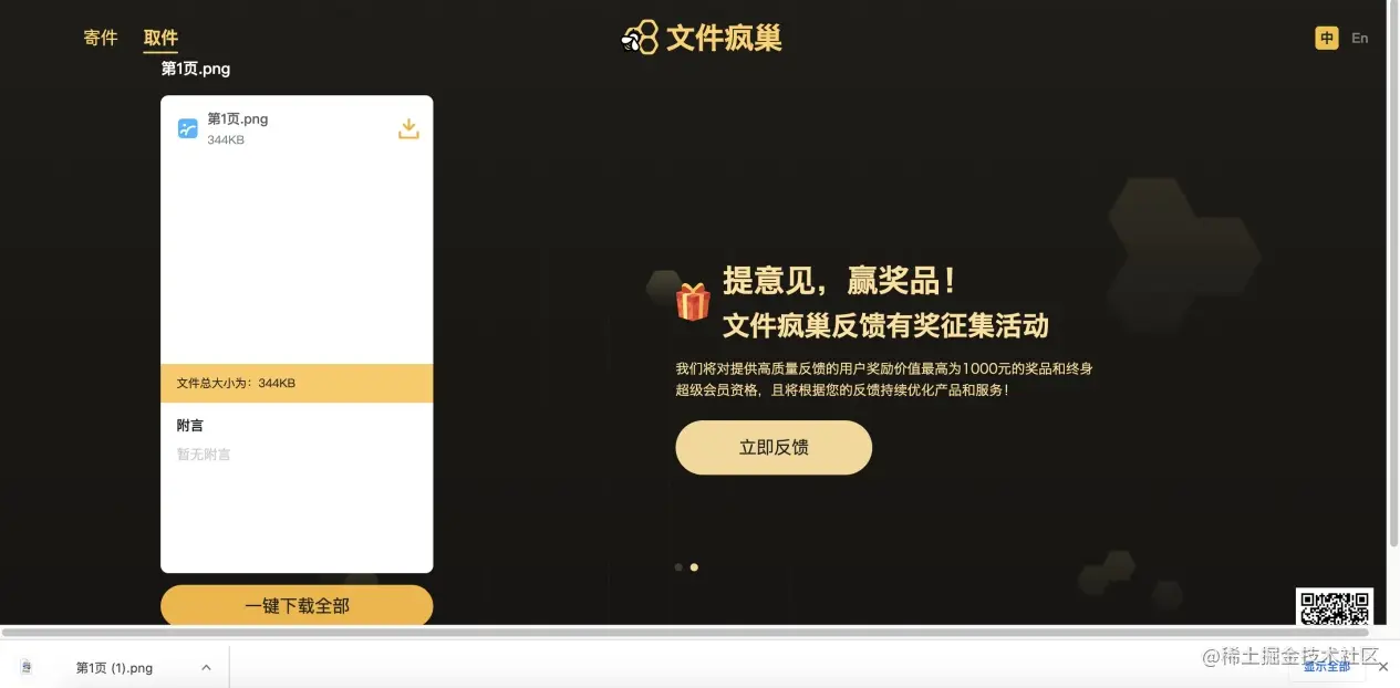 上传成功后,可以直接分享6位取件码给下载者,下载者通过打开官网输入取件码即可下载,也可以直接通过分享下载链接进行下载。