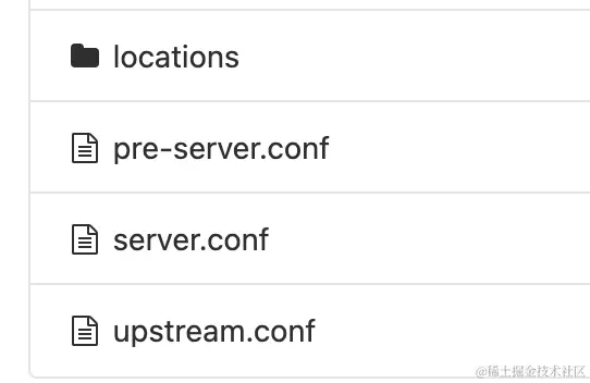 其中 server.conf 引入 locations 下所有的配置文件,再由 nginx 主配置文件引入各个 server.conf 文件,因此每次只需要在 locations 目录下新增 path 文件,通过自动化部署(jenkins),即可生效(jenkins 会自动执行 nginx reload)。