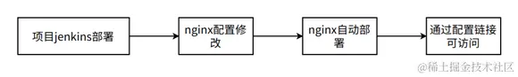 新项目通过 jenkins 部署之后,在 nginx 项目中对应的 host 目录下按照规则添加 .path 文件,来生成访问链接。流程如下图: