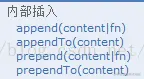 A.appendTo(B) 将A插入到B的内部后面 (之后的串联操作,操作A)