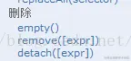 remove() 删除当前对象。如果之后再使用,元素本身保留,绑定事件或 绑定数据 都会被移除