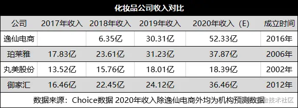 成立仅5年、年收入超50亿,这样的业绩表现,不仅超过了完美日记创始人黄锦峰的老东家——御家汇,还超过了丸美股份、珀莱雅两家成立超10年的公司。根据Choice数据,机构预测,2020年珀莱雅、御家汇、丸美股份的预期收入分别为37.87亿、36.46亿、18.39亿。