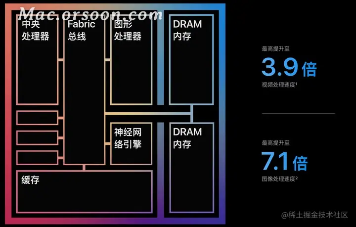 M1芯片的机型目前最多只支持16GB的内存,对于内存消耗大户(图形设计、视频编辑、程序开发)略显不够,不过苹果在M1芯片中采用定制封装的策略:图形处理器、CPU处理器可以访问内存中的同一份数据,巧妙地提升了性能和能耗